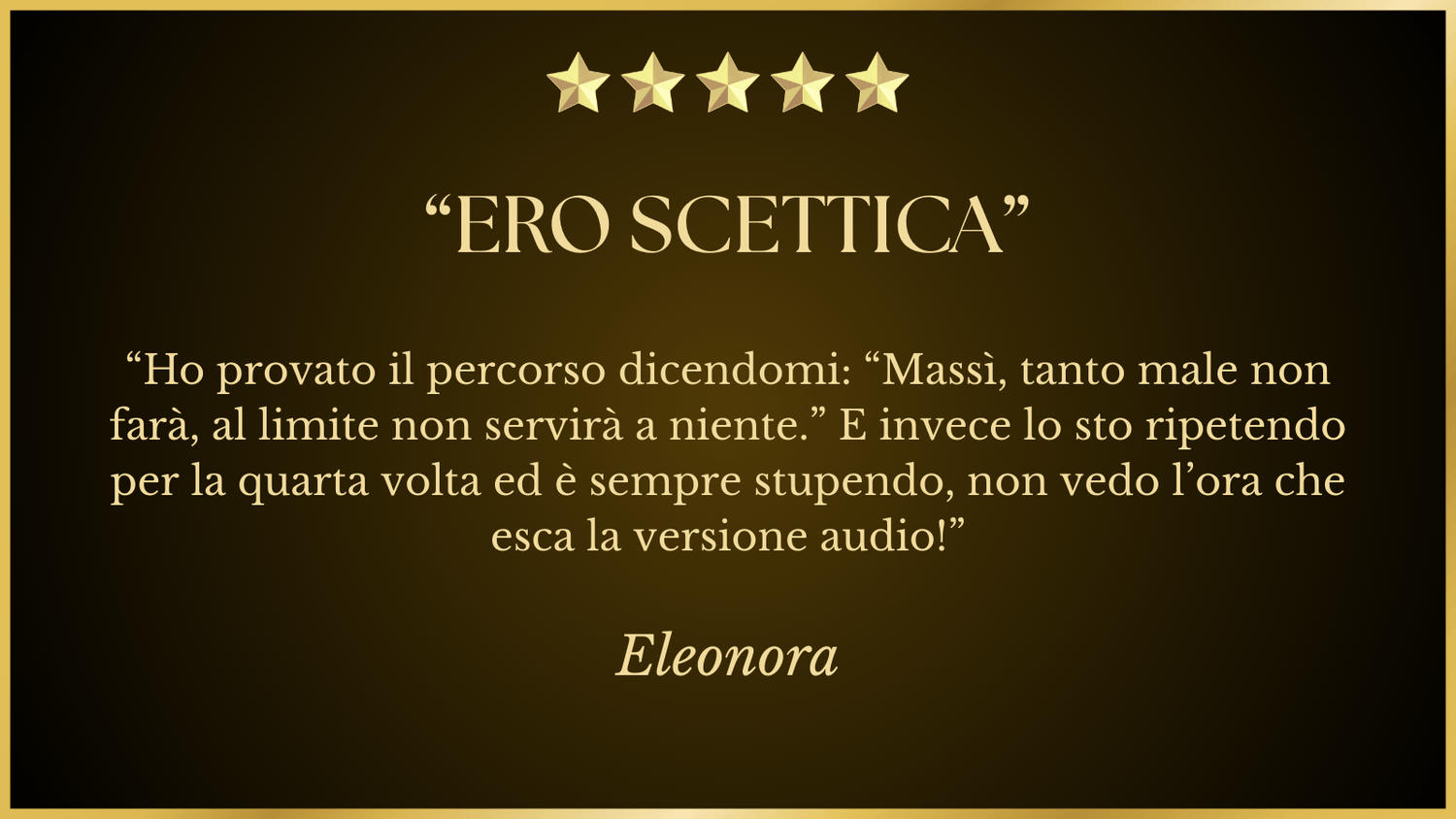 È fondamentale comprendere che i servizi offerti non costituiscono né offrono assistenza medica o psicologica. Inoltre, si sottolinea che nessun percorso mira a diagnosticare, trattare o curare specifiche condizioni mediche o psicologiche. Elena Cavicchi non è medica, né psicologa, né psicoterapeuta, pertanto non emette diagnosi.